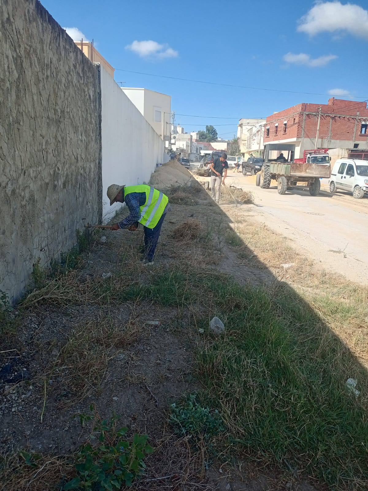 الصناعية و تقليع الأعشاب و رفع الأتربة بمقبرة سيدي مروان والعمل متواصلليشمل كامل المنطقة البلدية إن شاء الله